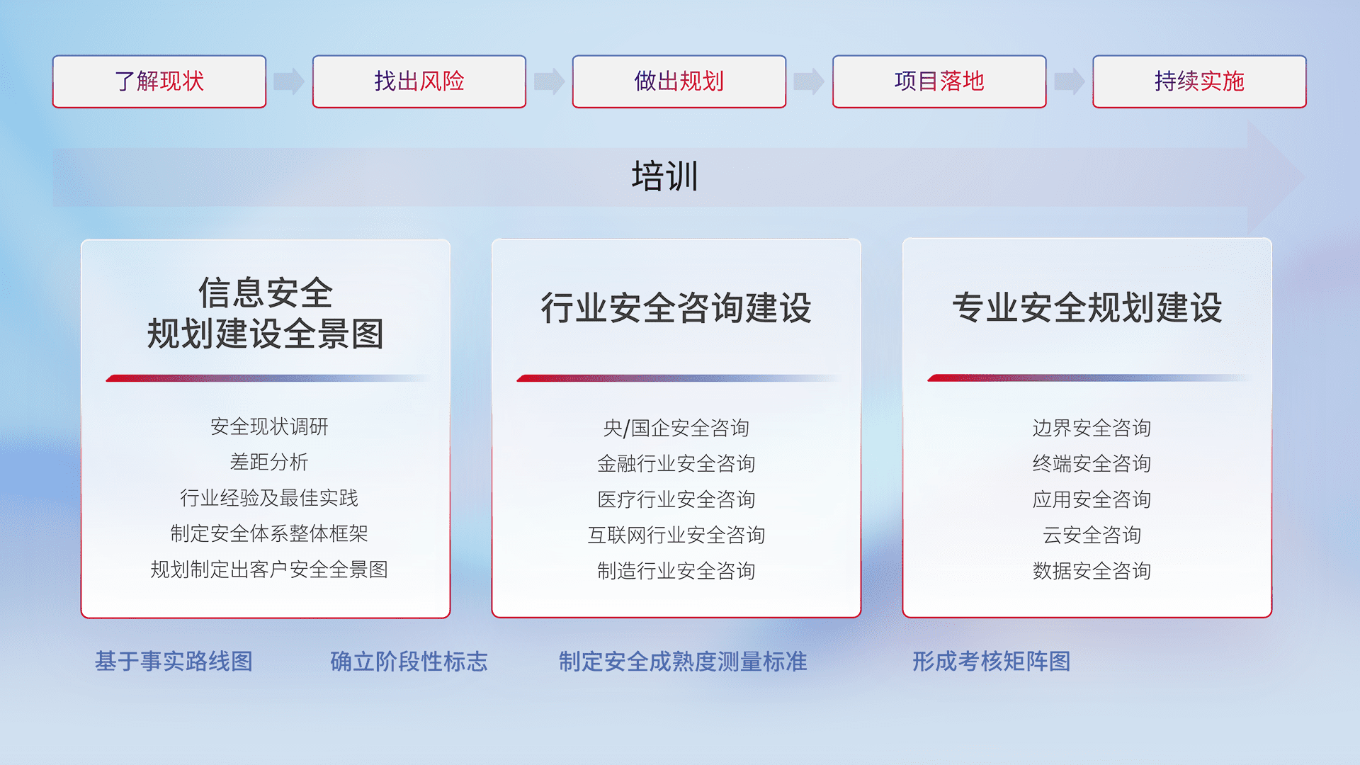 通过专业的法律咨询解读、、合规架构体现、、、、差异化解决方案、、、测试实施支持等服务,,为客户量身打造等保合规体系。。